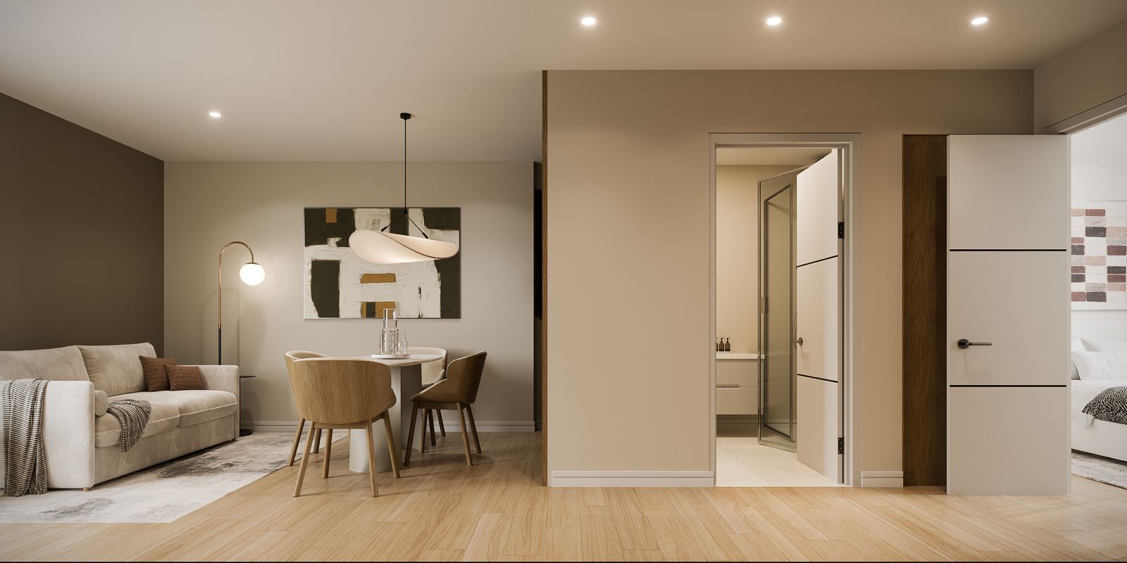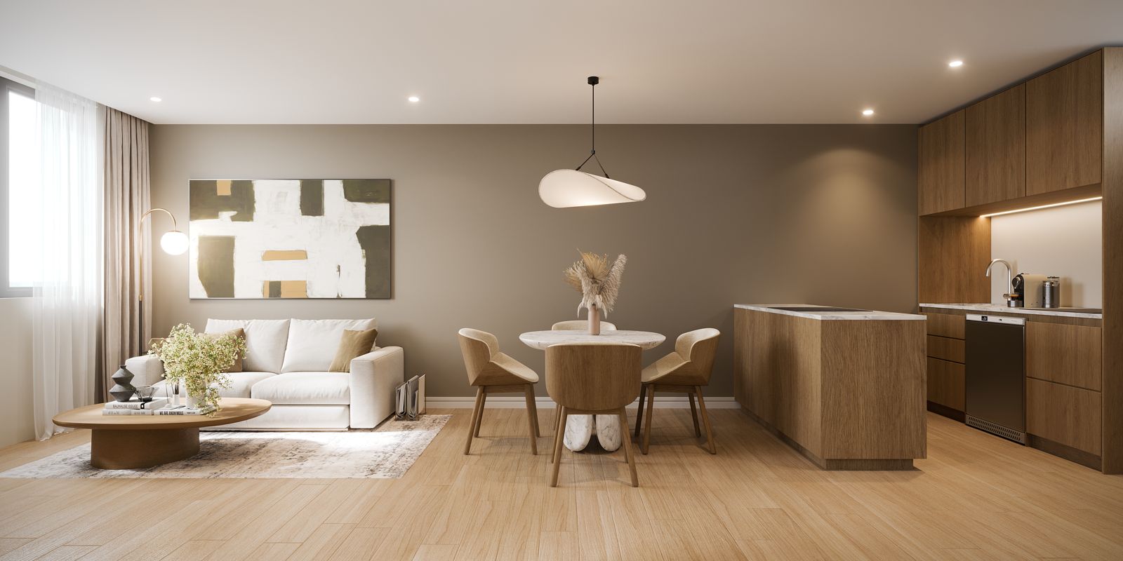 Las unidades ofrecen un diseño contemporáneo con espacios abiertos que integran sala, comedor y cocina totalmente equipada. Este estilo no solo mejora la experiencia del huésped, sino que incrementa la ocupación y, por ende, la rentabilidad.